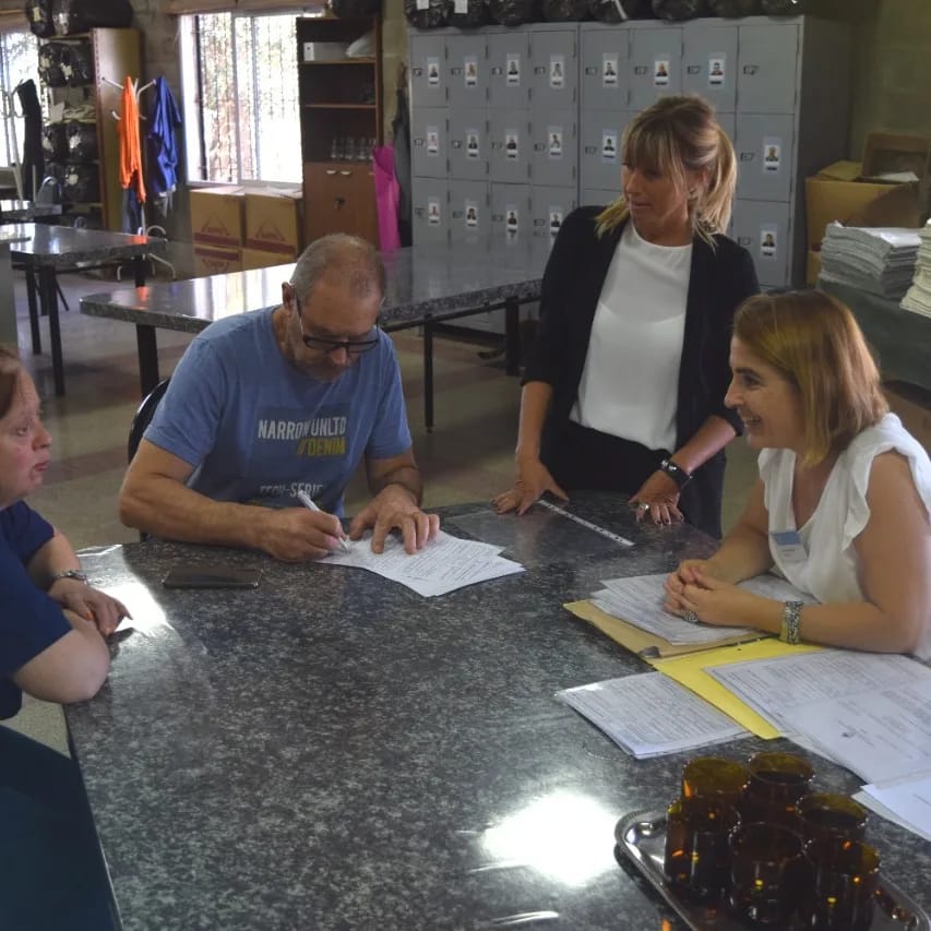 Hoy los trabajadores/as del Taller Protegido que cumplen con los requisitos de ley firmaron los papeles para el inicio de sus jubilaciones.