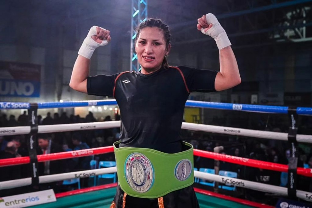 La pergaminense derrotó por puntos en fallo unánime a Yamila Reynoso y le arrebató el cinturón sudamericano en la noche del sábado en Paraná. (Fotos: Facebook BDP 30).