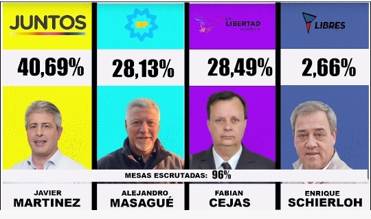 Con el 98 por ciento de las mesas escrutadas el actual intendente se impone con el 41,40 por ciento de los votos contra 28% de Cejas y 27 de Masagué.