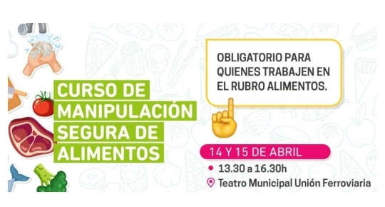 La Dirección de Bromatología de la Municipalidad de Pergamino informa que se encuentra abierta la inscripción a un nuevo Curso de Manipulación Segura de los Alimentos, que se realizará los días 14 y 15 de abril en el Teatro Municipal Unión Ferroviaria (Boulevard Alsina 535), de 13.30 a 16.30 horas.