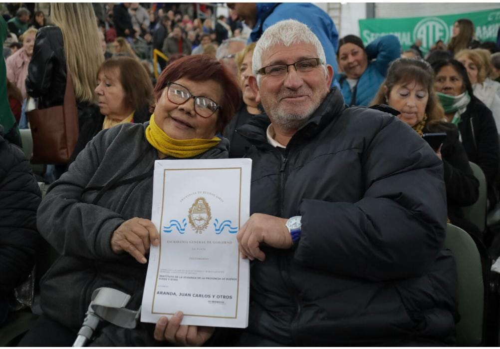 En un acto cargado de emoción, que se desarrolló este jueves en el Gimnasio del Parque Municipal, 1331 familias de Pergamino recibieron la escritura de su vivienda, muchas de ellas después de más de 30 años de espera.