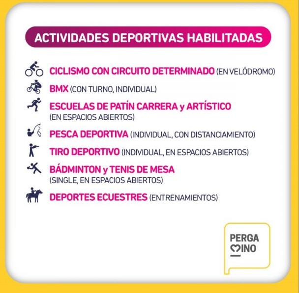 Cabe aclarar que los mencionados deportes deberán realizarse únicamente en instituciones deportivas púbicas o privadas, incluyendo clubes y polideportivos, de lunes a viernes y en espacios al aire libre, respetando todos los protocolos.