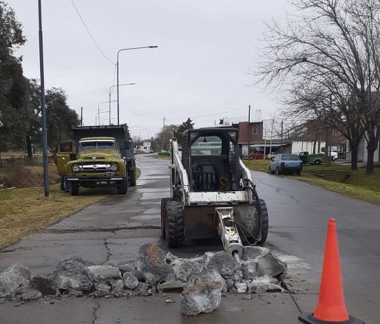 La Municipalidad informa que se están llevando a cabo tareas de bacheo rígido en Av. Dr. Jauretche al 400.
