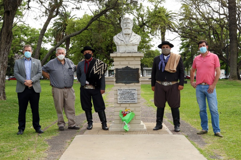 En este marco, el secretario de Gobierno de la Municipalidad Juan Manuel Rico Zini participó esta mañana, junto al Presidente del Fortín Matías Fontana y al integrante de la Comisión de Fortín Pergamino Raúl Fontana, de la entrega de la ofrenda floral en el Monumento a José Hernández, ubicado en la Plaza San José.