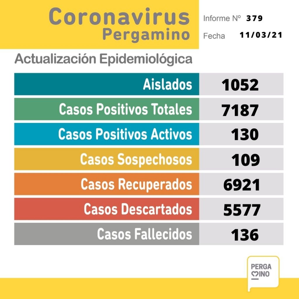 La Municipalidad, a través de la Secretaría de Salud del Partido de Pergamino, brinda el parte epidemiológico del día e informa: