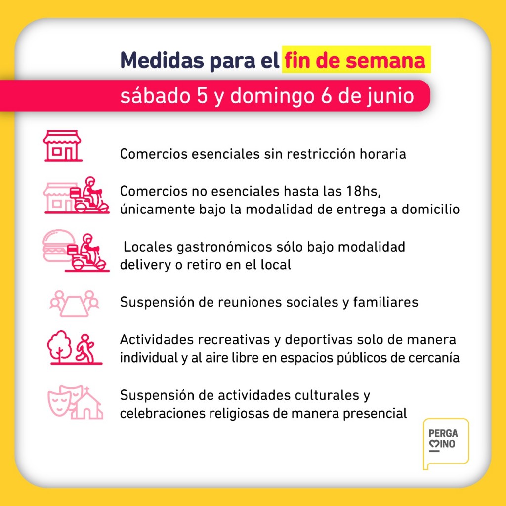 La Municipalidad recuerda las medidas que regirán este sábado 5 y domingo 6 de junio, según el Decreto Nacional.