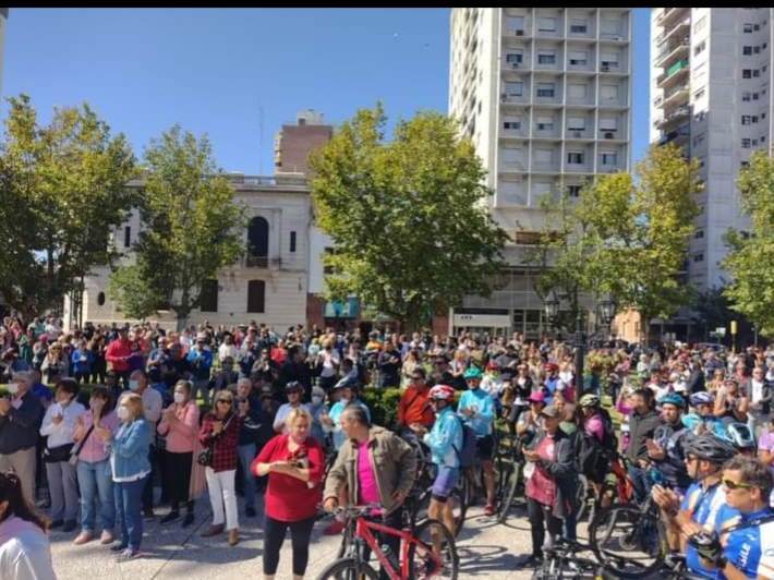 El sábado al mediodía en la plaza Merced se autoconvocaron personas de la comunidad y de las actividades deportivas recreativas a manifestarse contra los episodios de inseguridad.